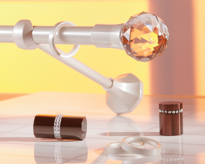 «Селена» - коллекция декоративных карнизов D20 мм, украшенная стразами и выполненная в оригинальных цветах. Литые наконечники и кронштейны, имеющие гальваническую обработку, идеально гармонируют со стразами и дают поистине неограниченный размах для дизайнерской фантазии.