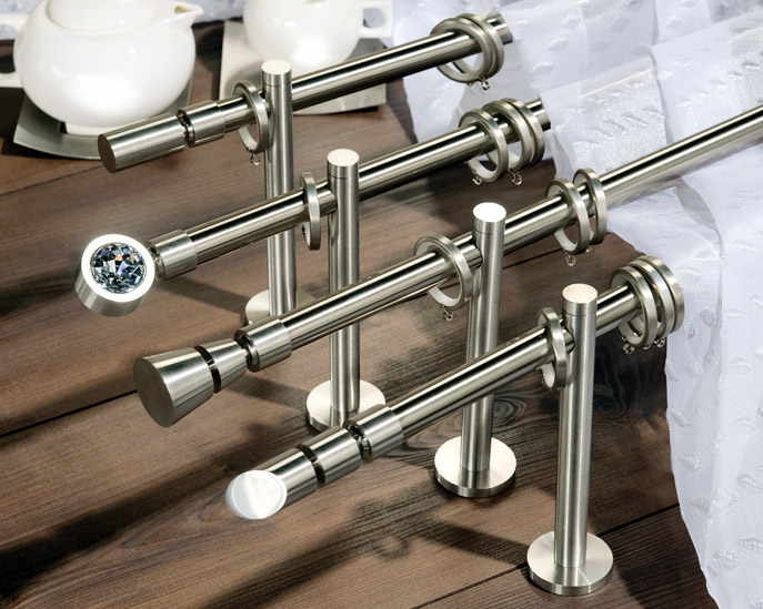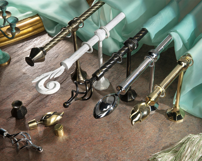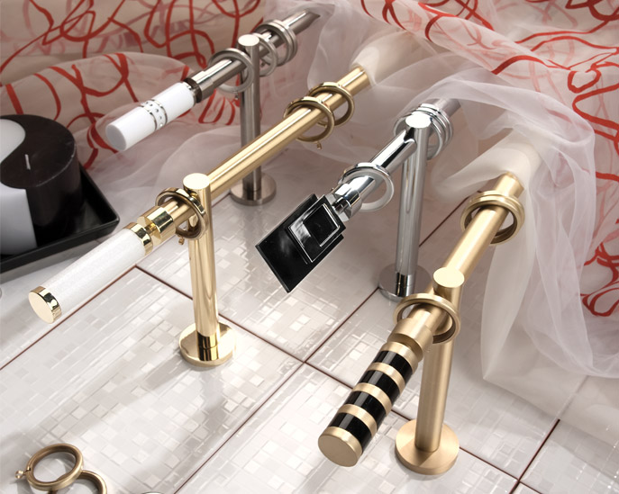 «Прима» - коллекция декоративных карнизов D20 мм, выполненная в классическом стиле. Высокопрочный сплав алюминия используется для производства литых наконечников и кронштейнов, имеющих гальваническую обработку. Стальные трубы имеют специальное полимерное покрытие.