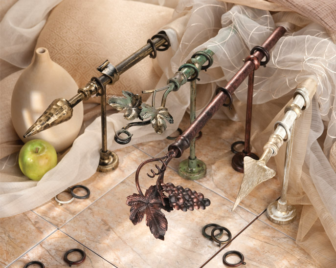 «Кремона» - эксклюзивная коллекция декоративных кованых карнизов D22 мм, выполненная в стиле ренессанс. В линейке кованых наконечников, изготовленных вручную, присутствует широкий выбор флористических форм. Все элементы коллекции окрашены в неповторимые античные цвета, на которые, наноситься специальное защитное лакировочное покрытие, для предохранения поверхности от внешних дефектов и сохранения первозданного вида. Внутри металлических колец присутствует вставка из высококачественного пластика, предотвращающая трение и появление царапин на трубах и создающая плавное, бесшумное скольжение по всей длине карниза.